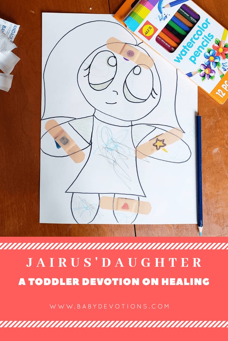 This activity is super simple, and works on so many skills. Shape recognition, color recognition, fine motor skills. Also, tied in because this girl has many illnesses, but Jesus can heal them all.