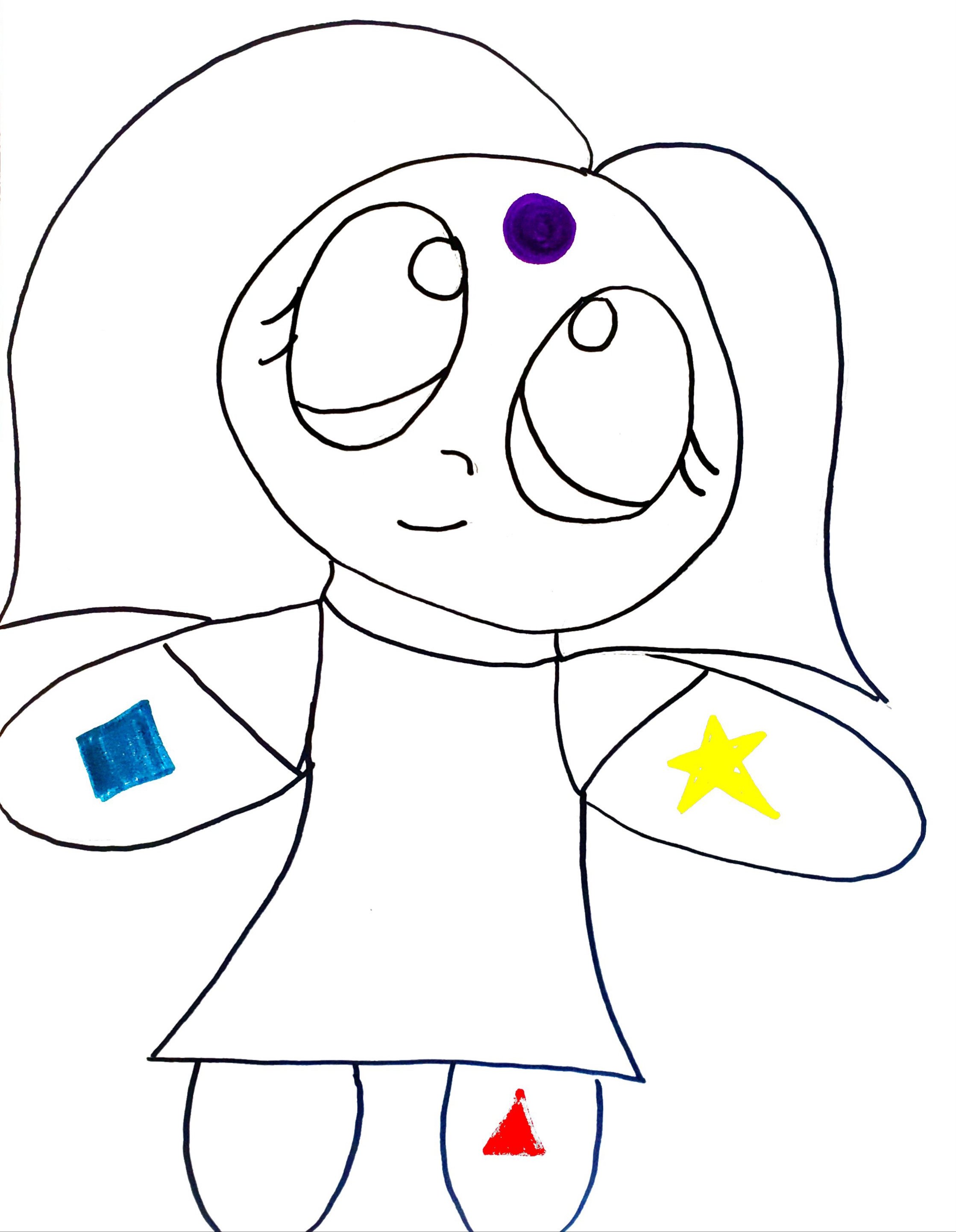 1. Draw shapes on bandaids. I found it helped to have the shapes on the bandaids be the same color as the shapes on the girl.