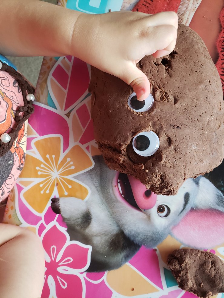 I borrowed this idea from I Can Teach My Child, but used the Mud Playdough recipe from Mama, Pappa, Bubba, because I had to use what was in my kitchen. This playdough mud was a perfect alternative for toddlers who don’t like to have dirt hands. We played with the “mud” and talked about what animals like to stomp in mud (pigs, elephants, dinosaurs?…). Then we talked about how Jesus put mud on a man’s eyes.