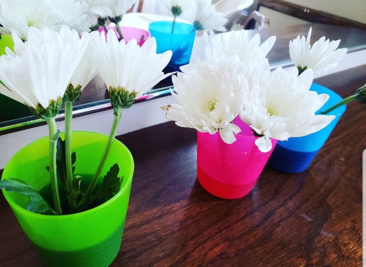 - Ask your child what they think will happen to the flowers sitting in colored water.