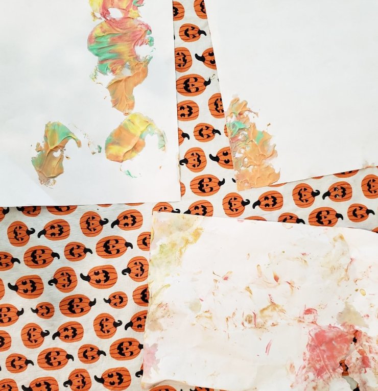 We then cut some of the apples in half and did some apple stamping. I used taste-safe finger paint so that Naomi could join in the fun.