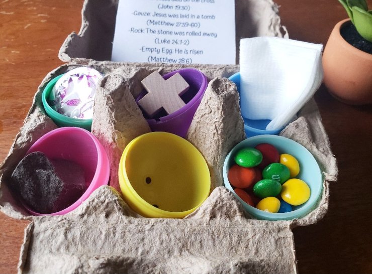 Resurrection eggs are an awesome sensory tool to help teach the Easter story. Traditionally there are 12 Easter eggs filled with sensory items to help tell the story.