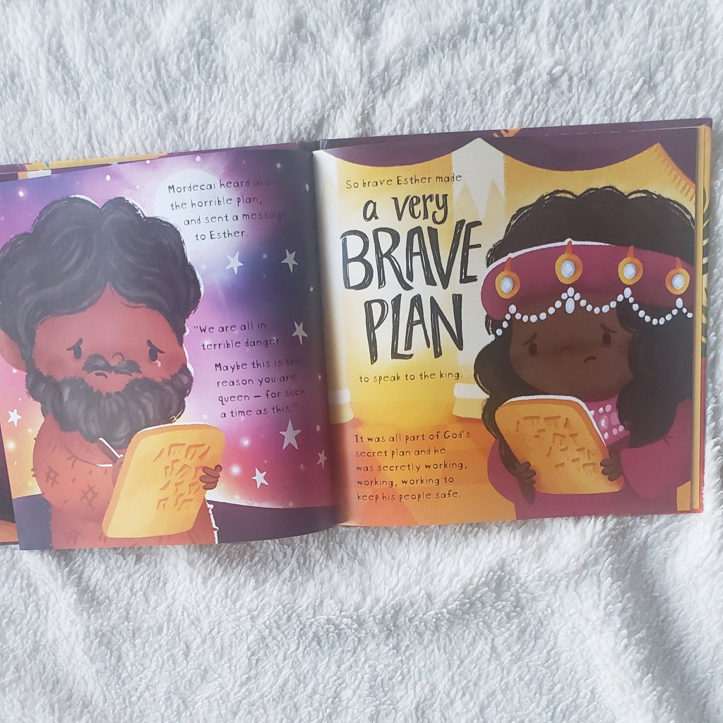 No worries, the text also shines a light at how brave Esther was. How can we read this story and not find a role-model of faith for our littles. This text does a beautiful job of capturing both/and. We can focus on the compelling brave princess storyline, while also discipling our children in the theology of ‘hidden miracles.’