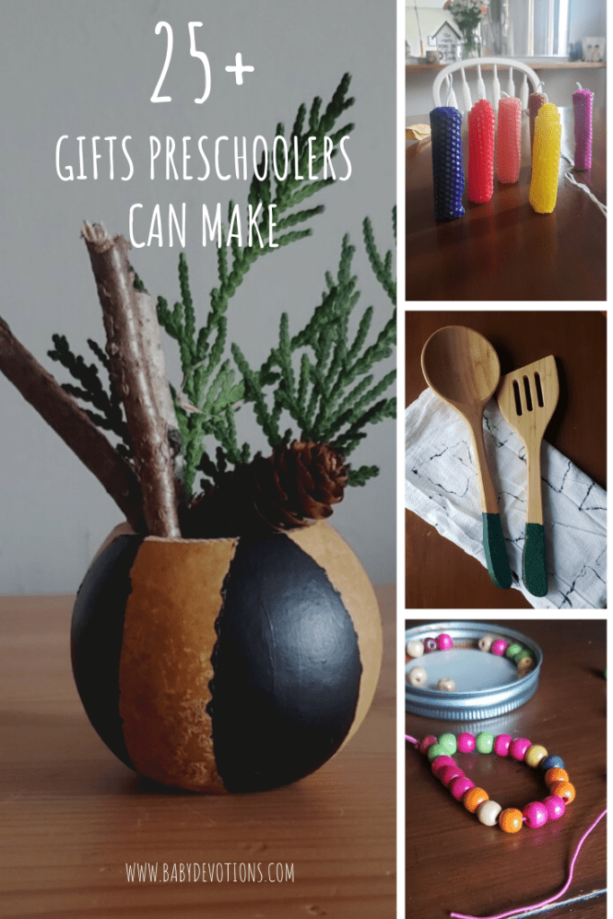 The season of giving is upon us! And though it may be easier to just take our littles to the store and let them pick out stuff for friends and family, it can sometimes add a little more meaning to let our little ones use their hands to make something from the heart. Here is a round up of my favorite gifts preschoolers can make with minimum assistance. I have either actually made most of these items with my own preschoolers, or have seen other moms of preschoolers making these items with their littles. Most of the items are incredibly useful, and are sure to be cherished as they came from your little one.