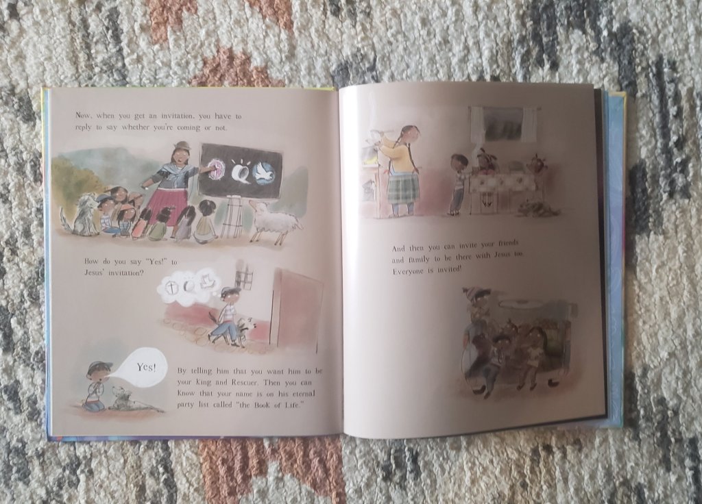 Another thing I liked is when they talked about accepting Jesus’ invitation, they jumped to a scene of a Peruvian Sunday School teacher talking with her Peruvian class. It was so refreshing to see this diversity represented. And this whole scene shows people within their own culture talking about Jesus, not outsiders coming in. I think that is so so important for children to see, but rarely do.