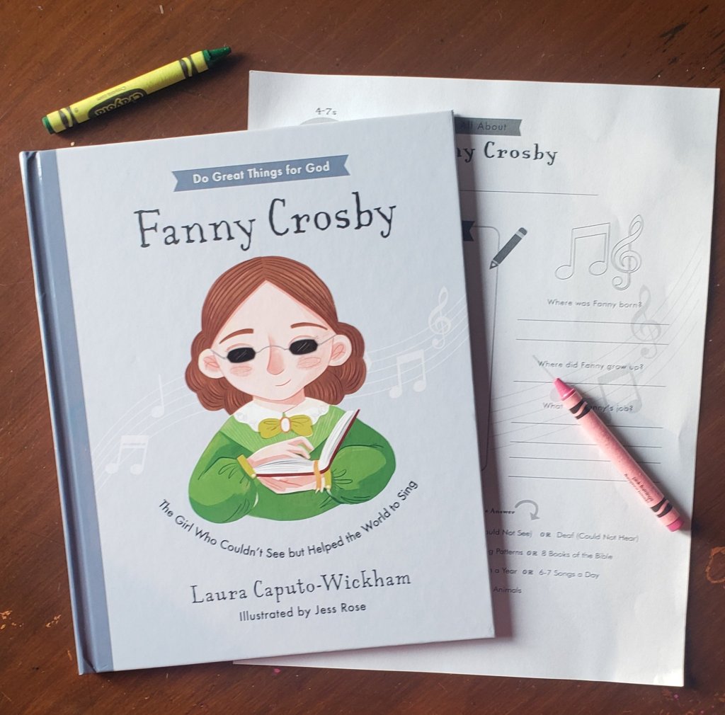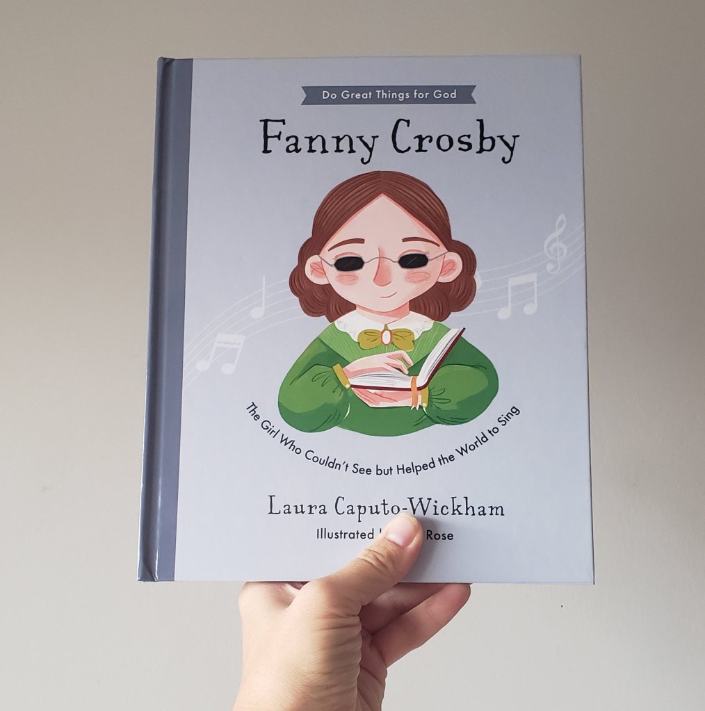 Fanny Crosby is a musical legend in the church. Those who don’t know here name, are sure to at least know her music. Being the composer of numerous hymns, such as Blessed Assurance and I Am Thine O Lord. Most of her hymns I have fond memories of singing with my Dad during nursing home ministry. Though, I must admit, before reading ‘Fanny Crosby: The Girl Who Couldn’t See, But Helped The World To Sing‘ by Laura Caputo-Wickham, I wasn’t familiar with her story. This book is a gift, shining a light on an amazing woman from Christian history, and allowing us to share Fanny’s story with the next generation.