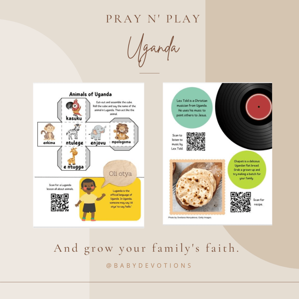 We have a passion for learning about and praying for the Global Church. You can learn more about that on our Pray n’ Play: The Global Church page. Now it is easier than ever to come pray n’ play with us. This month we are learning about and praying for the church in Uganda!