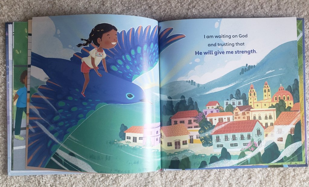In Mexico a little girl rides on the wings of a bird, waiting on God, trusting He will give her strength:
