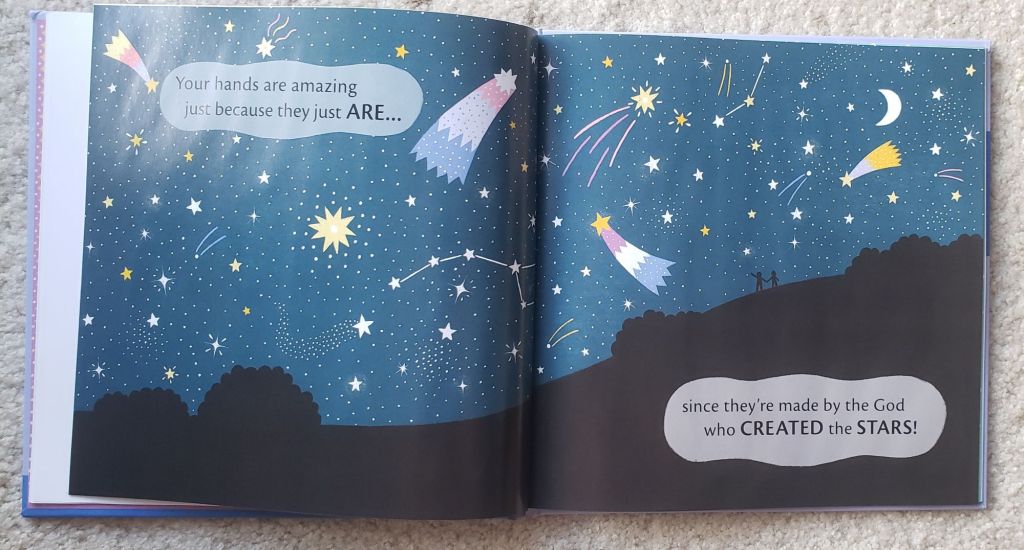 I think this book is executed wonderfully. It is a beautiful way to share the Gospel with young hearts and how it applies to our everyday. It leads kids with rhymes (an important literacy skill), to see how fearfully and wonderfully our hands are made. From tidying our rooms to making mud pies, our hands are made to give glory to God. We can use them to comfort a friend, or give a gesture of welcome. They are good.