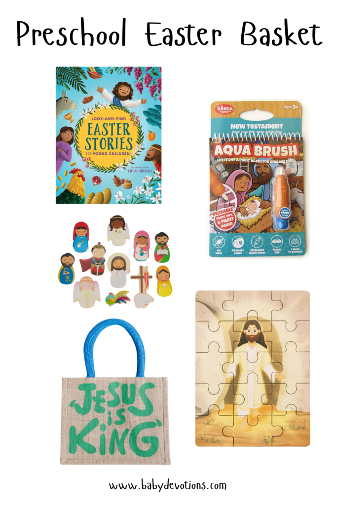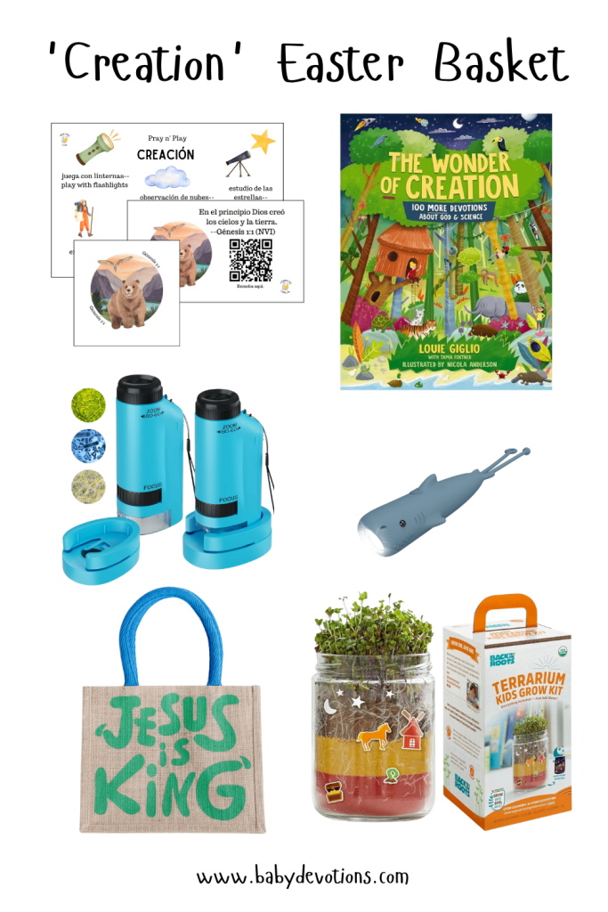Easter Baskets are sure one of my favorite traditions, and I especially love a themed basket. In addition, I also really love ‘window shopping.’ Or…you know…in the digital era, browsing products on Amazon just for fun. So in the heart of fun and favorites, I’ve made a list of Faith-Filled Themed Easter Basket Ideas. There’s something for all ages. You can choose to stick to a theme, or mix and match. My hope is to provide you with some ideas for how you can point your littles towards Jesus using their Easter Baskets. Any one of these baskets would be beautifully rounded-out with a Holy Pals Easter Basket and some Toddler Resurrection Eggs.