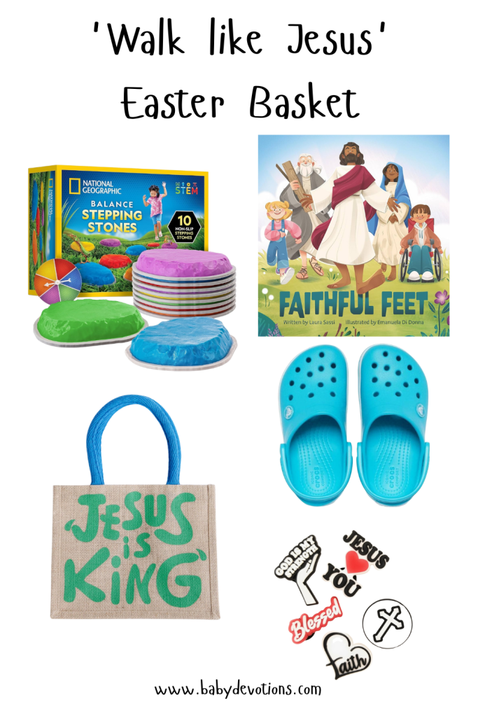 Faithful Feet: The new book by Laura Sassi would make a perfect Easter Basket Filler. It takes readers through the Bible, talking about faithful followers of God. Then shows us the most faithful person: Jesus. It encourages littles to ‘walk like Jesus walked’ 1 John 2:6.